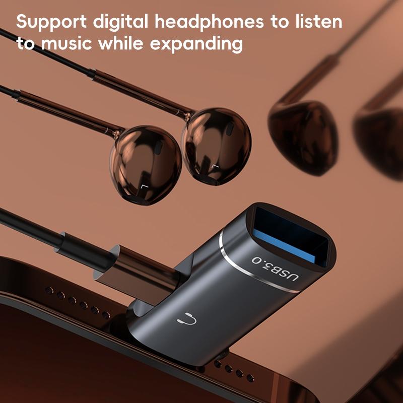 2 in 1 8 Pin to USB and Type-C Earphone Adapter(Black)