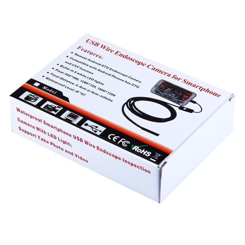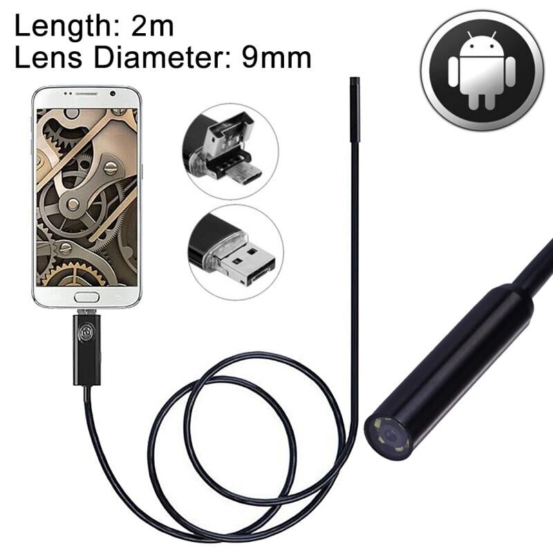 2 in 1 Micro USB & USB Endoscope Waterproof Snake Tube Inspection 1.0MP Camera with 6 LED for OTG Android Phone, Length: 2m, Lens Diameter: 9mm
