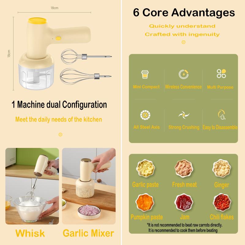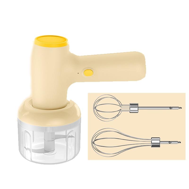 2 in 1 Portable Wireless Garlic Chopper Egg Beater Mixer Cooking Machine(Beige)
