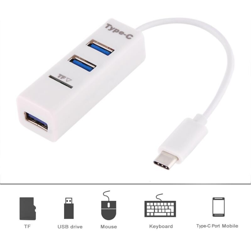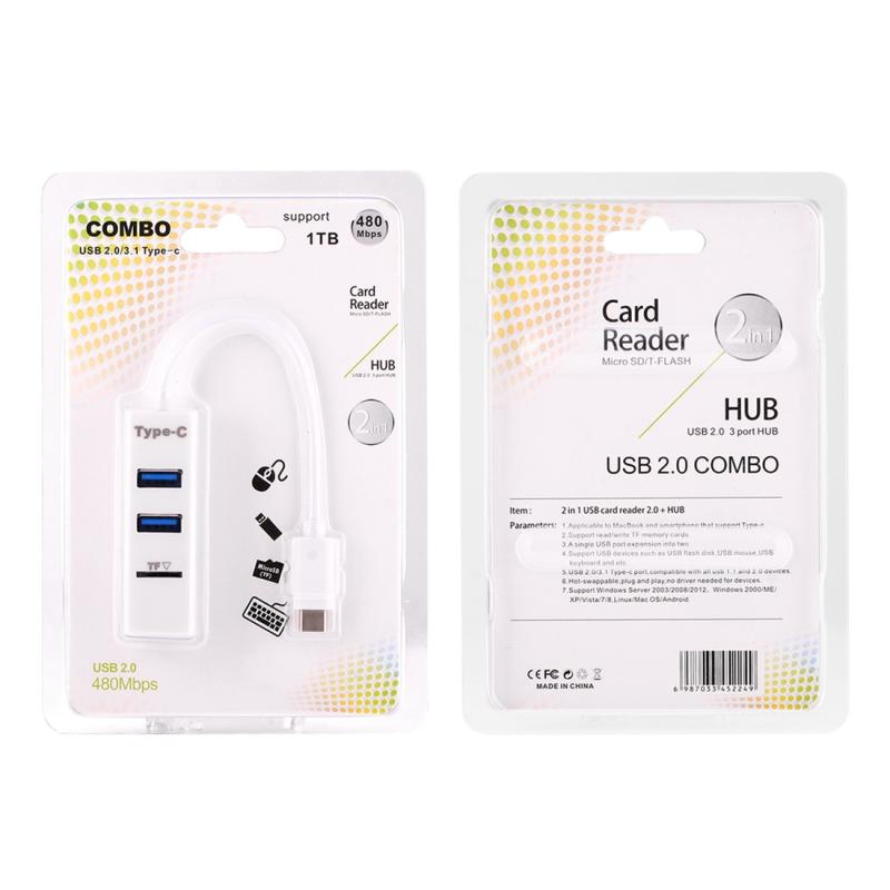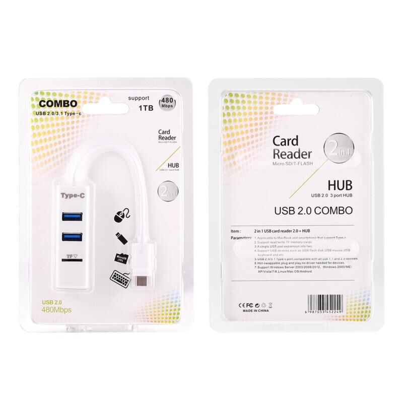 2 in 1 USB-C / Type-C 3.1 to USB 2.0 COMBO 3 Ports HUB + TF Card Reader(White)
