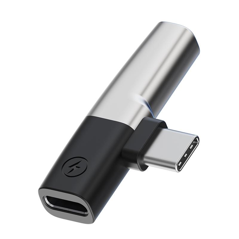 2 in 1 USB-C / Type-C to 3.5mm + USB-C / Type-C DAC Audio Phone Charging Adapter(Silver)