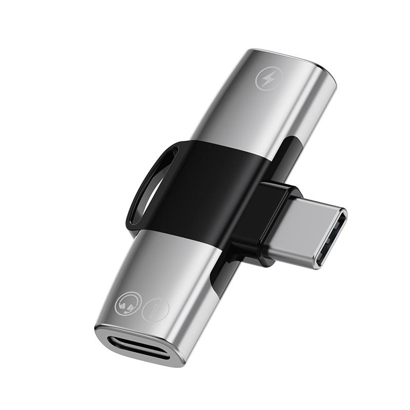 2 in 1 USB-C / Type-C to Dual USB-C / Type-C T-Type Audio Mobile Phone Charging Adapter(Silver)