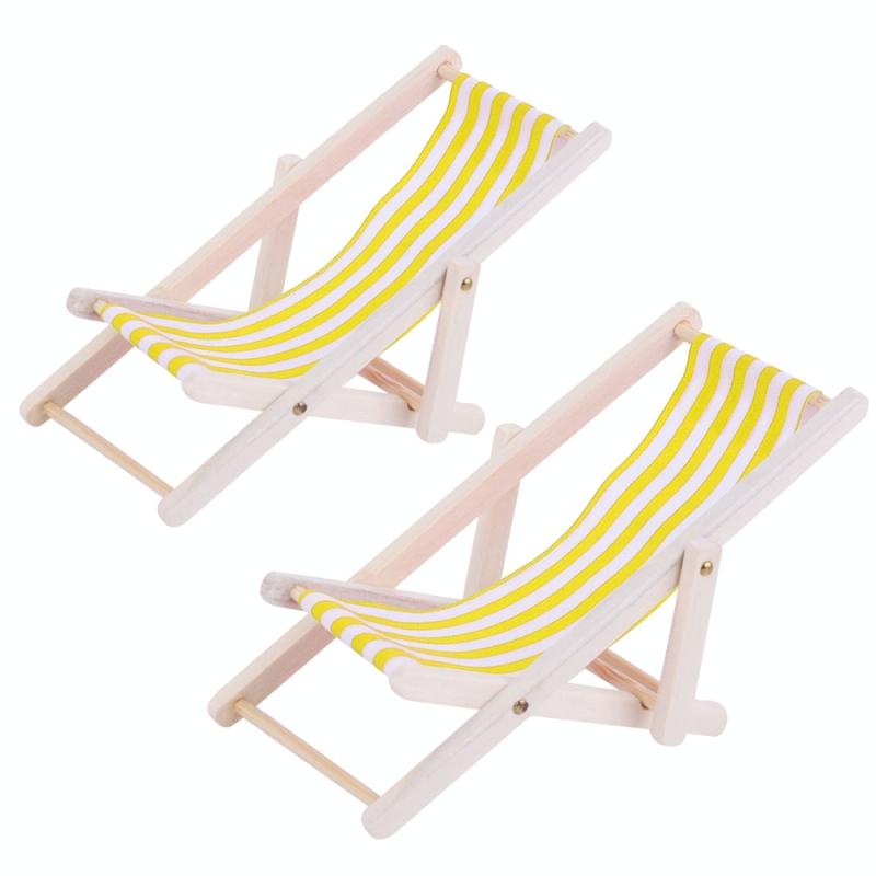 2 PCS 1:12 Beach Lounge Chair Simulation Model Outdoor Beach Scene Shooting Props Can Be Folded(Yellow)