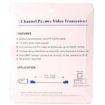 This is a pair of mini 1 channel passive video transceiver. Cost-effective point-to-point transmission.It can easily transmit and receive the video signals. It can be used for CCTV Camera, BNC, Cat5 UTP and so on.