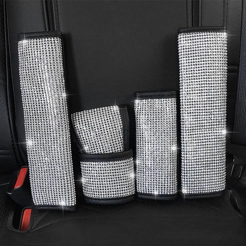 2 PCS Car Diamond-Studded Interior Products Personalized Protective Sleeve Parking Space Pull Cover