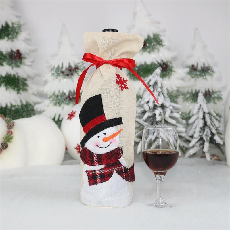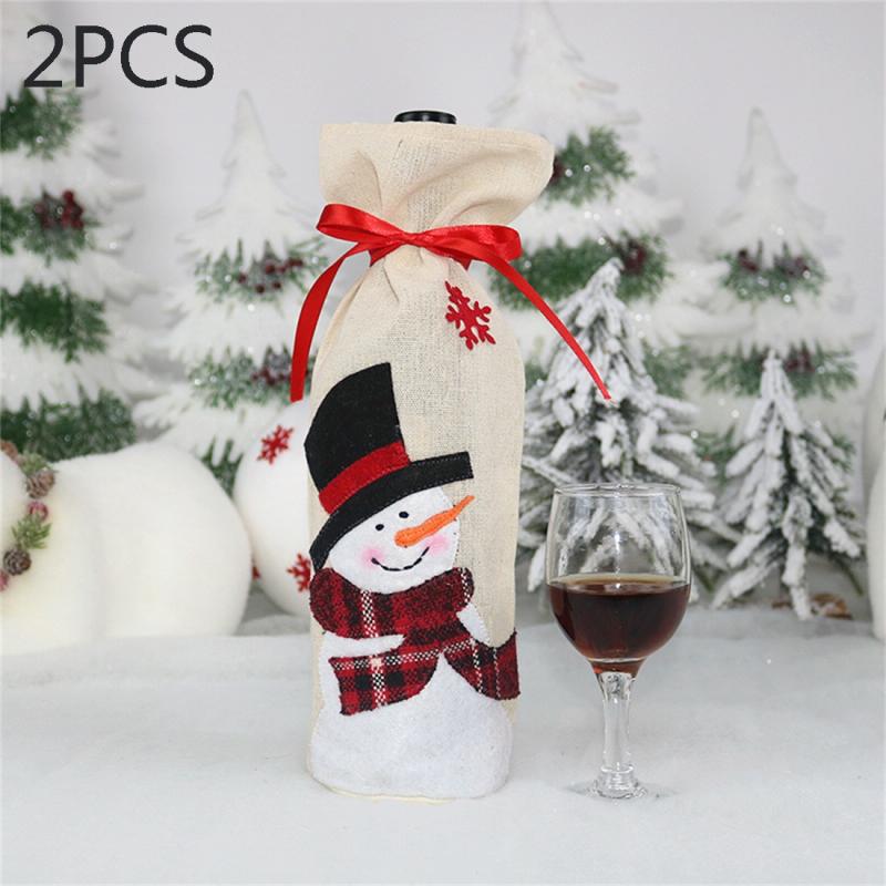 2 PCS CX20216 Snowman Pattern Wine Bottle Bag Christmas Decoration
