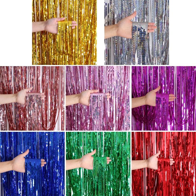 2 PCS Laser Rain Curtain Birthday Party Background Wall Decoration, Color: 1M Gold