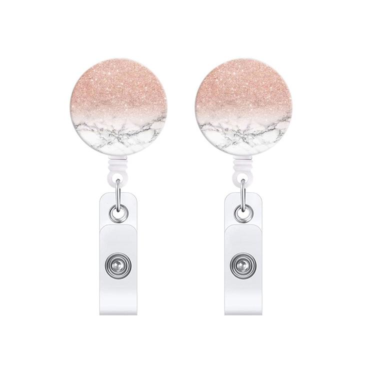 2 PCS Marble Texture Drop Glue Retractable Badge Reel Name Tag Card Badge(Light Pink Particles)