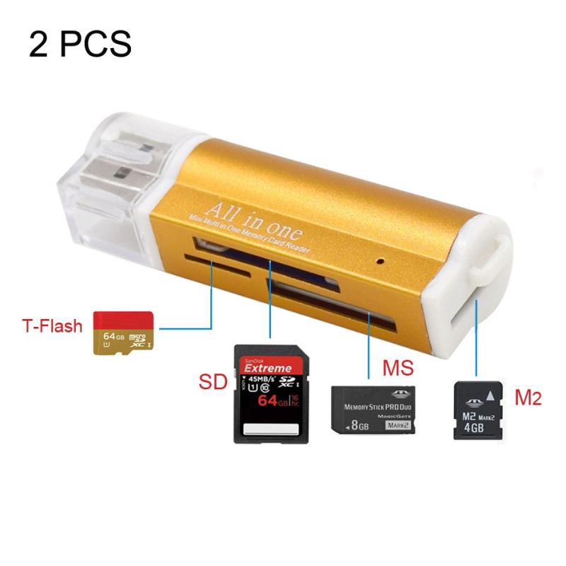 2 PCS Multi All in 1 USB 2.0 Micro SD SDHC TF M2 MMC MS PRO DUO Memory Card Reader(Gold)