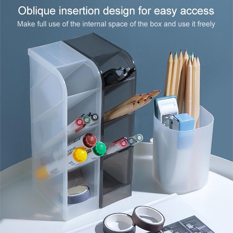 2 PCS Multi-function 4 Grid Desktop Pen Holder Office School Storage Case Clear Plastic Box Desk Pencil Organizer(Grey Round)