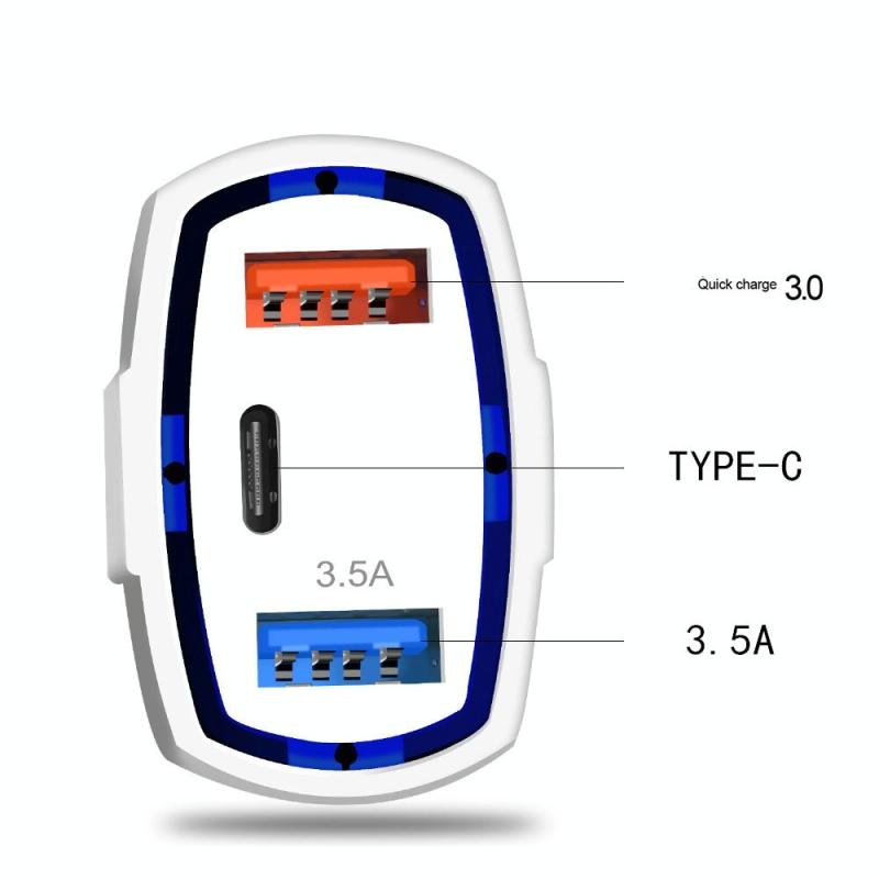 2 PCS QC3.0 Fast Charge Car Charger 3.5A Dual USB With Type-C Interface Output Car Charger(White)