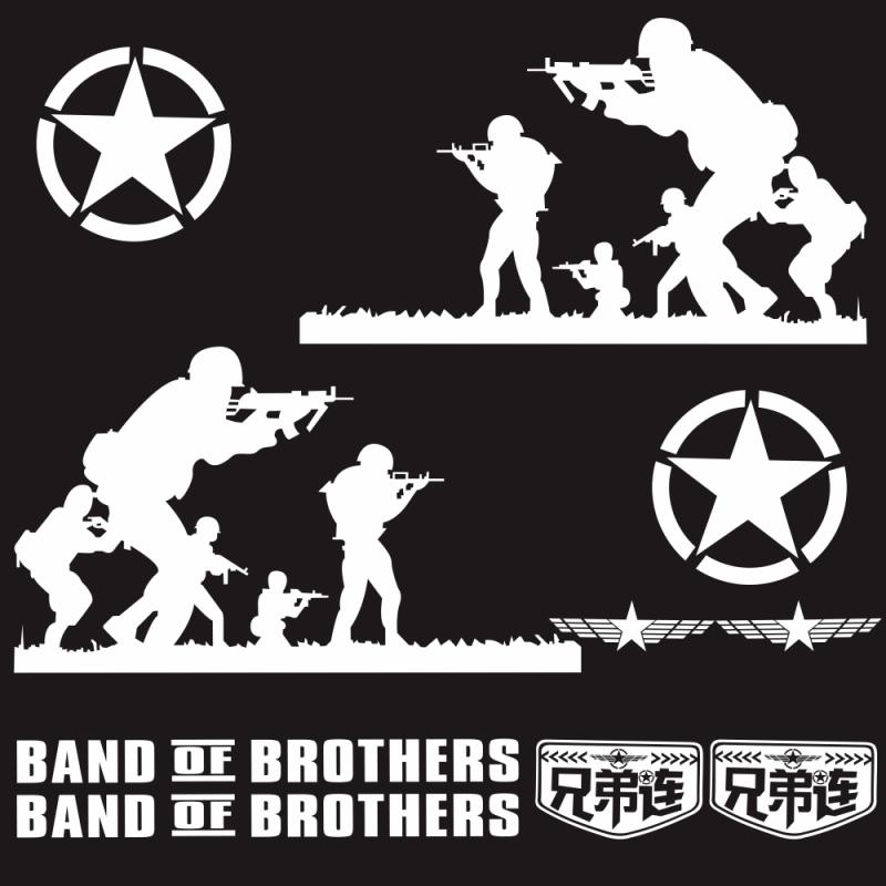 2 PCS/Set D-135 Band of Brothers Pattern Car Modified Decorative Sticker(White)