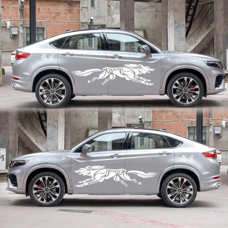 2 PCS/Set D-218 Wolf Totem Pattern Car Modified Decorative Sticker(White)