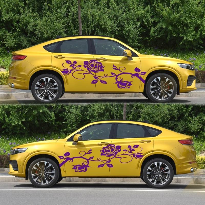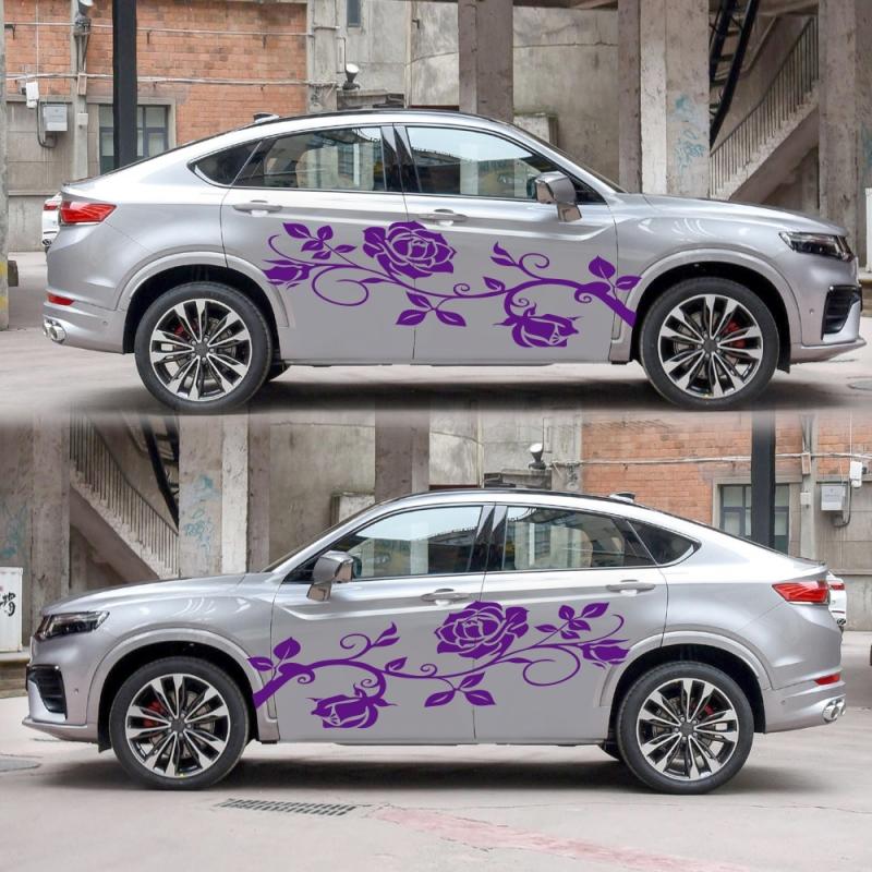 2 PCS/Set D-545 Rose Pattern Car Modified Decorative Sticker(Purple)