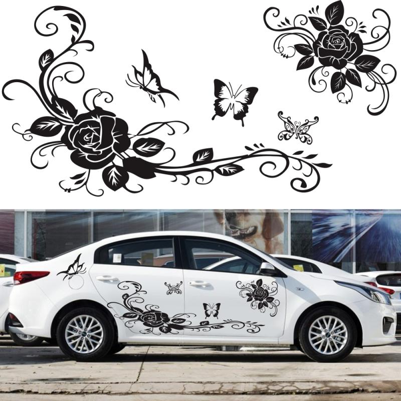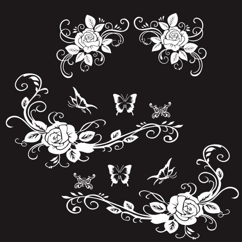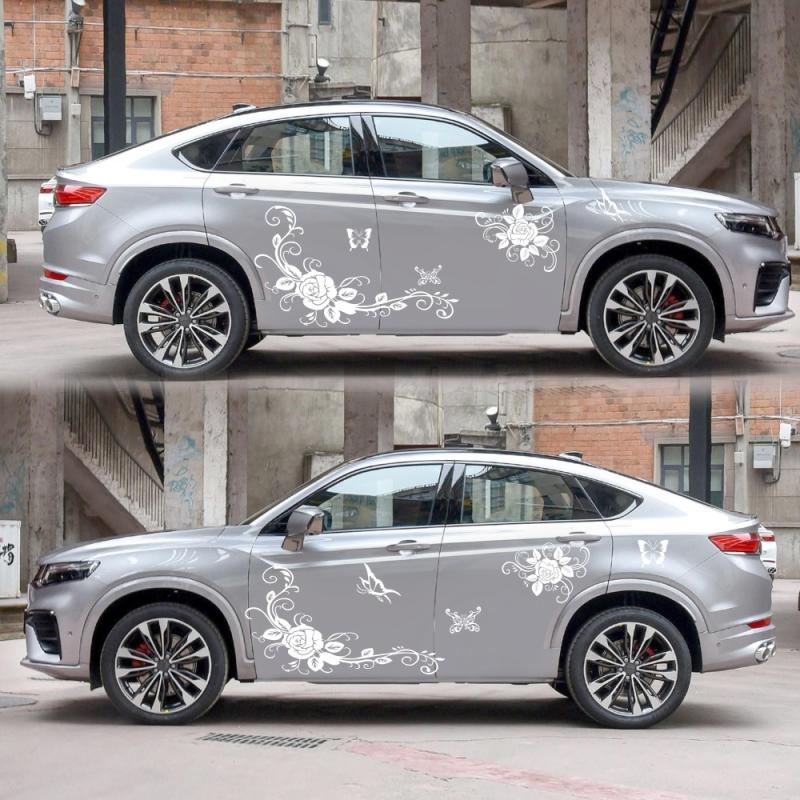 2 PCS/Set D-72 Butterfly Love Flower Pattern Car Modified Decorative Sticker(White)
