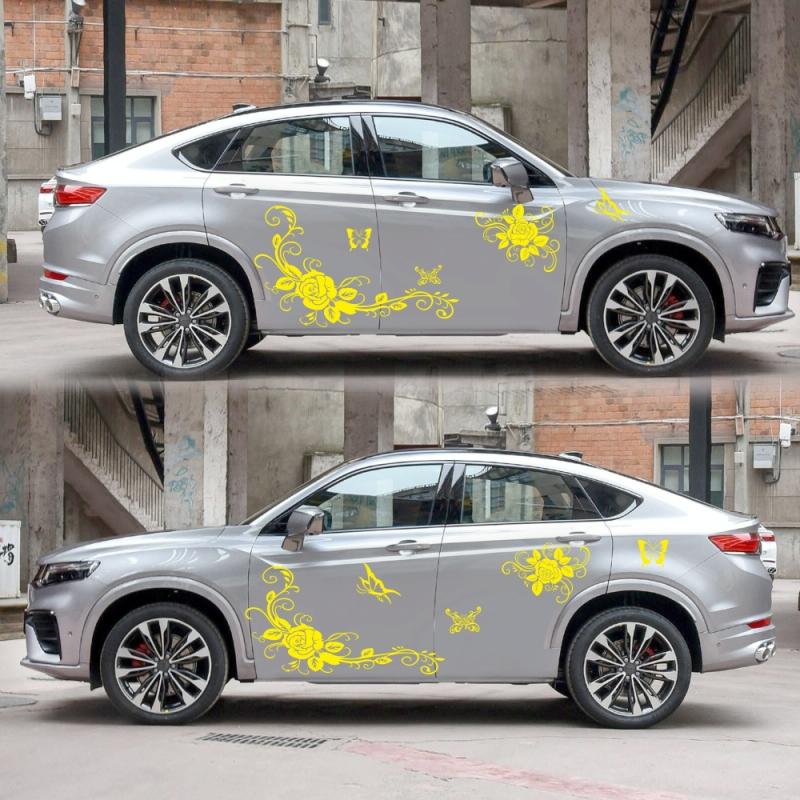 2 PCS/Set D-72 Butterfly Love Flower Pattern Car Modified Decorative Sticker(Yellow)