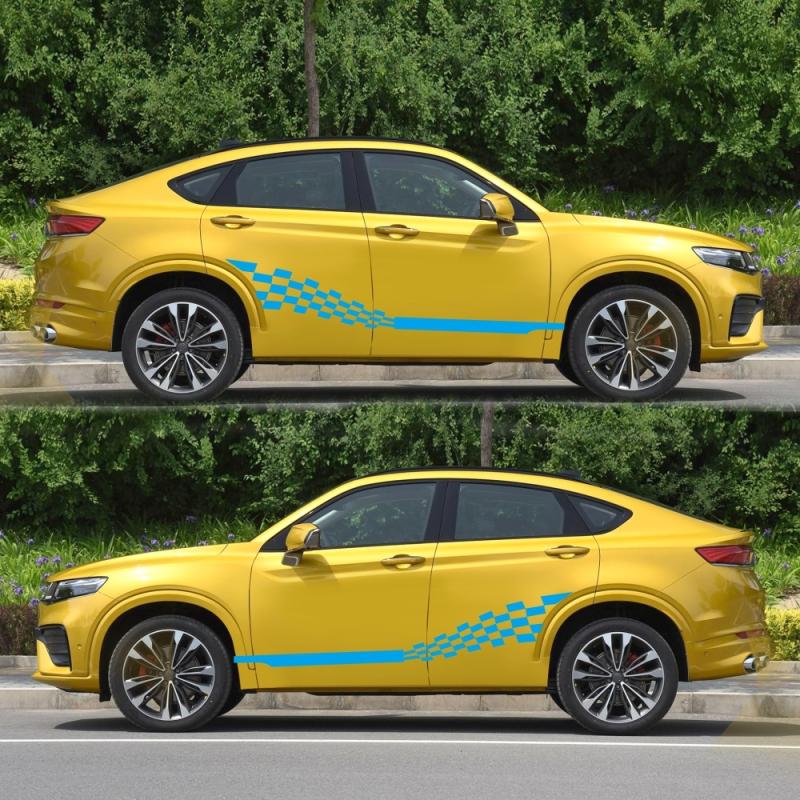 2 PCS/Set D-944 Striped Plaid Pattern Car Modified Decorative Sticker(Blue)