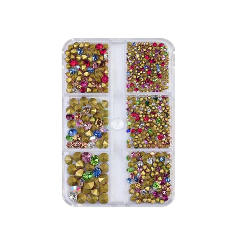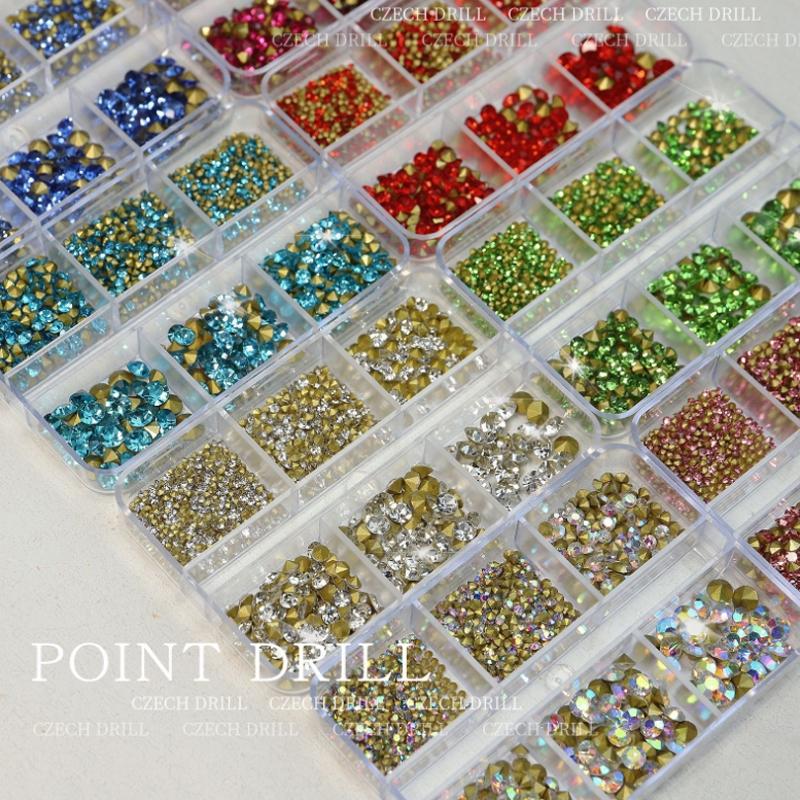2 Sets Nail Art 6 Grid Pointed Bottom Diamond Nail Jewelry, Specification: 10 Colorful