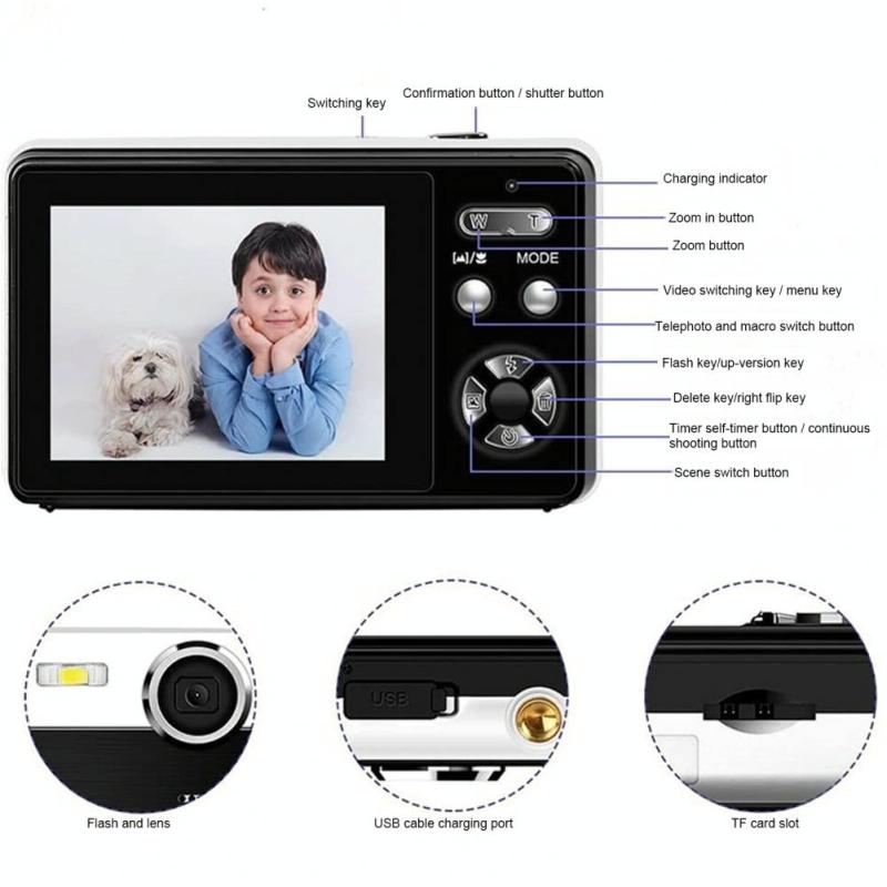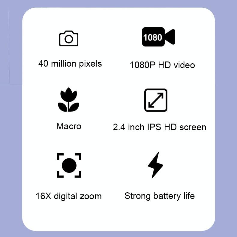 2.4 Inch IPS Screen 40 Million Pixel Digital Camera 16X Digital Zoom Video Macro Portable Camera(Black Standard)