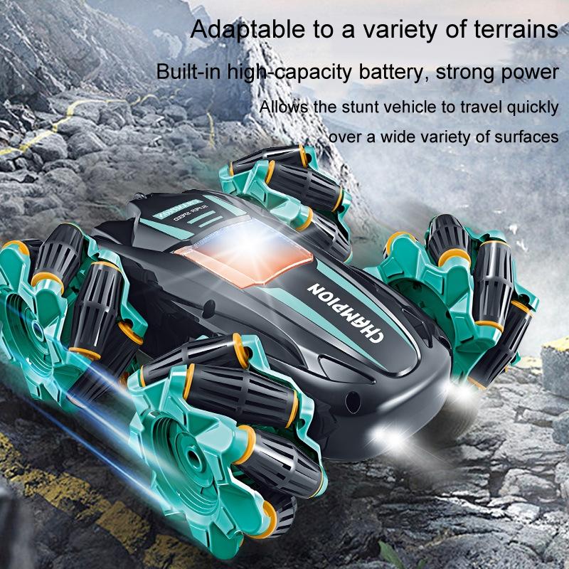 1. 2.4G wireless remote control, stable control, remote control distance, support more than one stunt car on the same stage competition