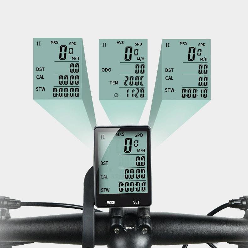 3. Multi-function stopwatch: unit selection, riding speed, riding time, riding mileage, system time, temperature, stopwatch.
