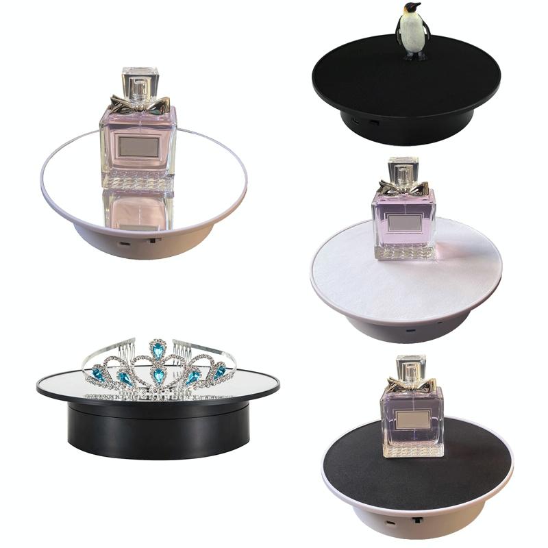 20cmTwo-Way Turntable Display Stand Video Shooting Props Turntable(White Bottom Black Velvet)