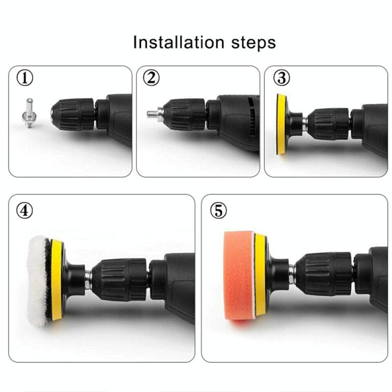 1. The sponge polishing kit is used with an electric drill, making it a versatile tool for polishing and cleaning a variety of surfaces.