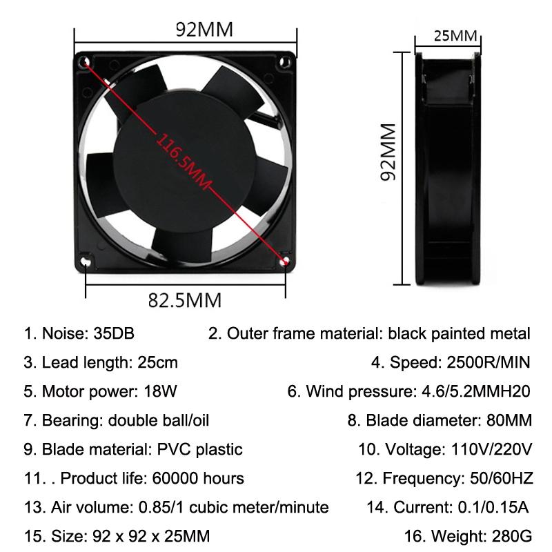 220V Double Ball Bearing 9cm Silent Chassis Cabinet Heat Dissipation Fan