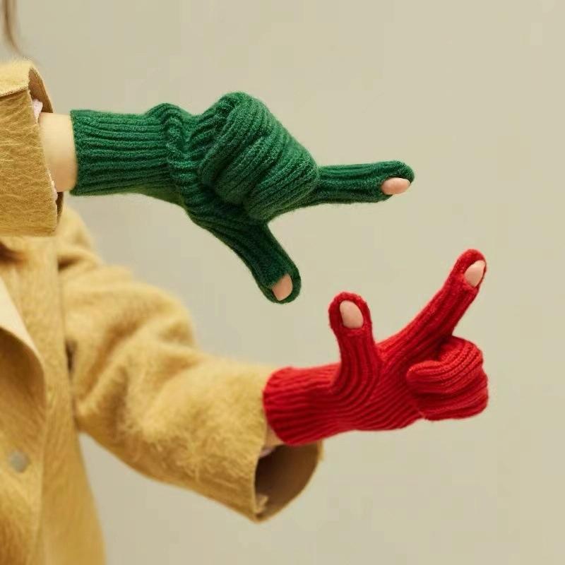 227-A0124 Wool Knit Striped Warm Touchscreen Gloves Winter Warm Cycling Gloves(Red)