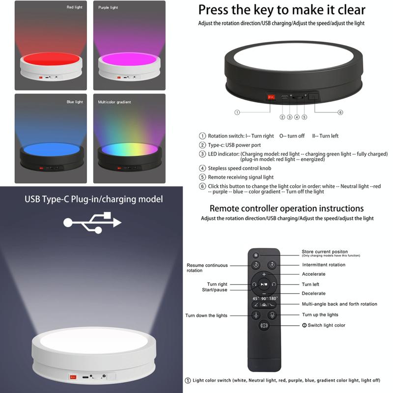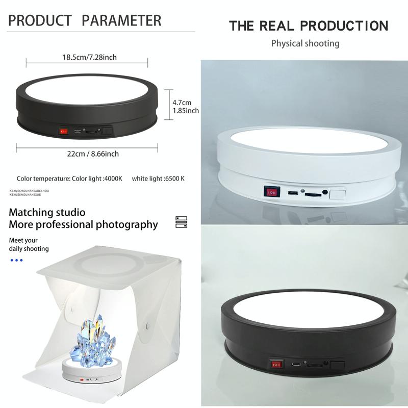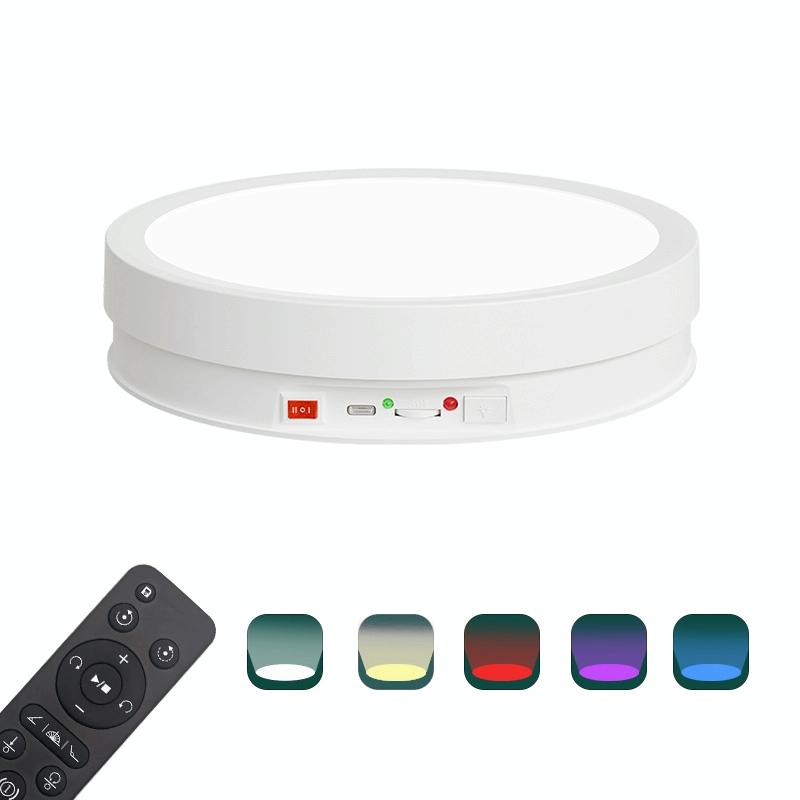 22cm Colorful LED Light Electric Rotating Display Stand Turntable, Style:Battery Charging(White)