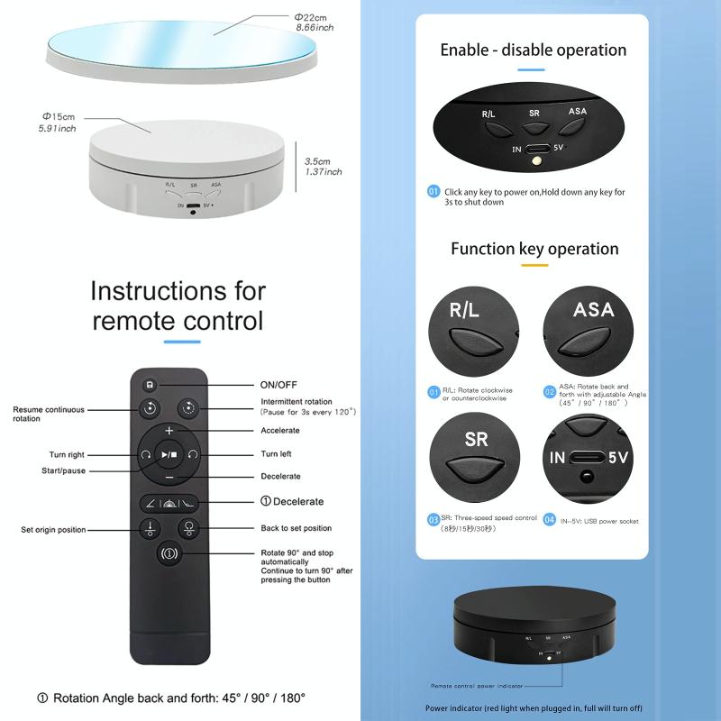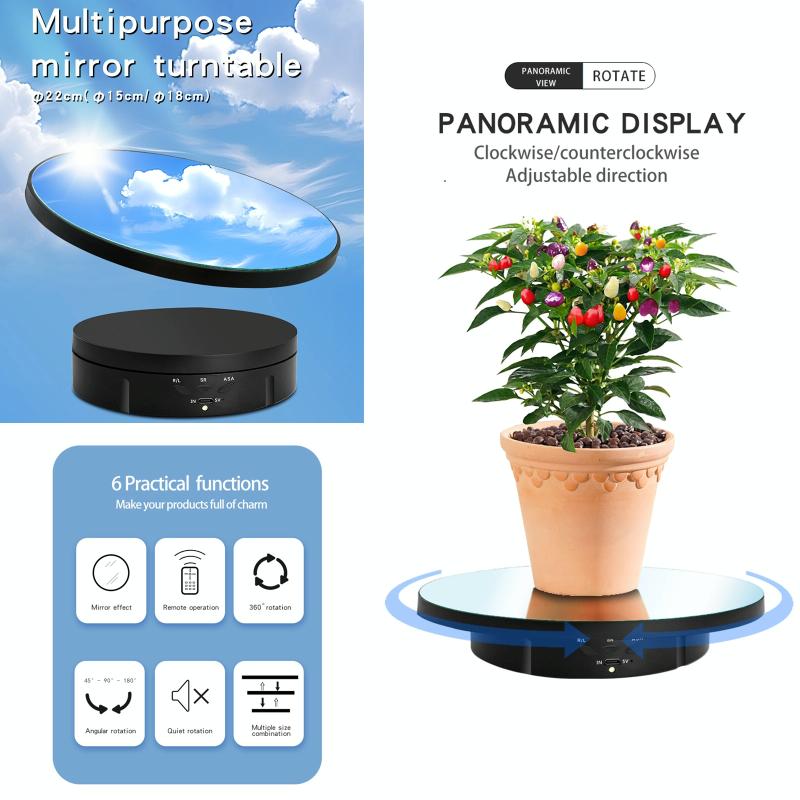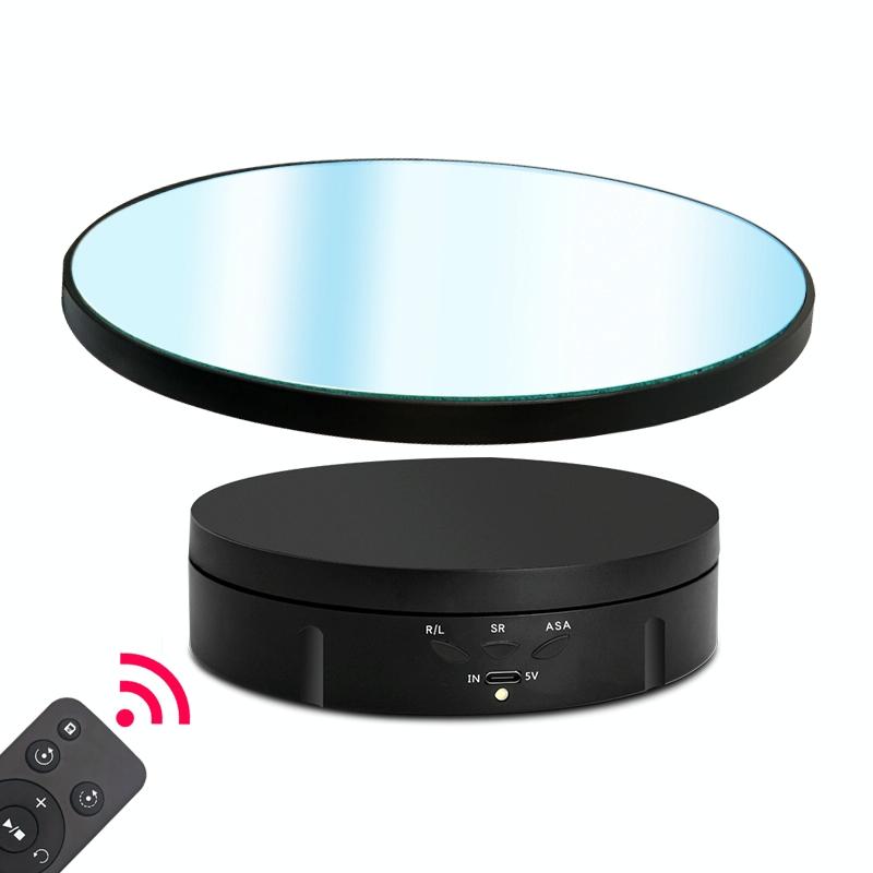 22cm Mirror Electric Rotating Display Stand Live Video Shooting Props Turntable With Remote Control(Black)