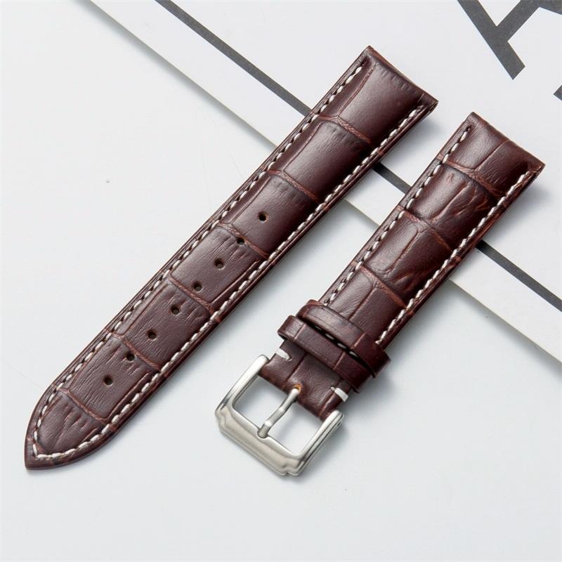 22mm Calf Leather Watch Band(Brown White Lines)