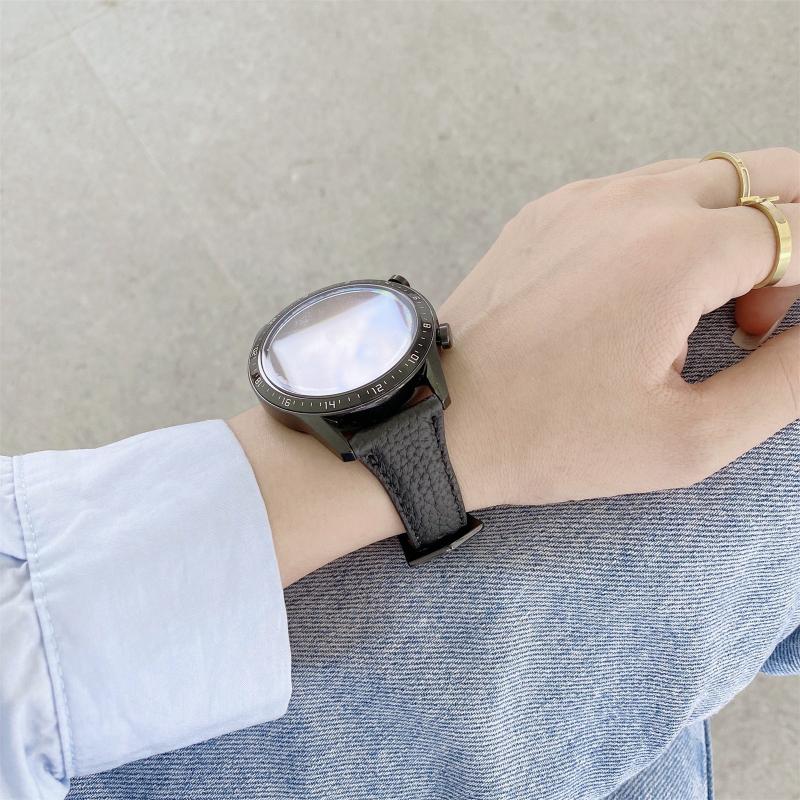 22mm Small Waist Lychee Texture Leather Watch Band(Black)