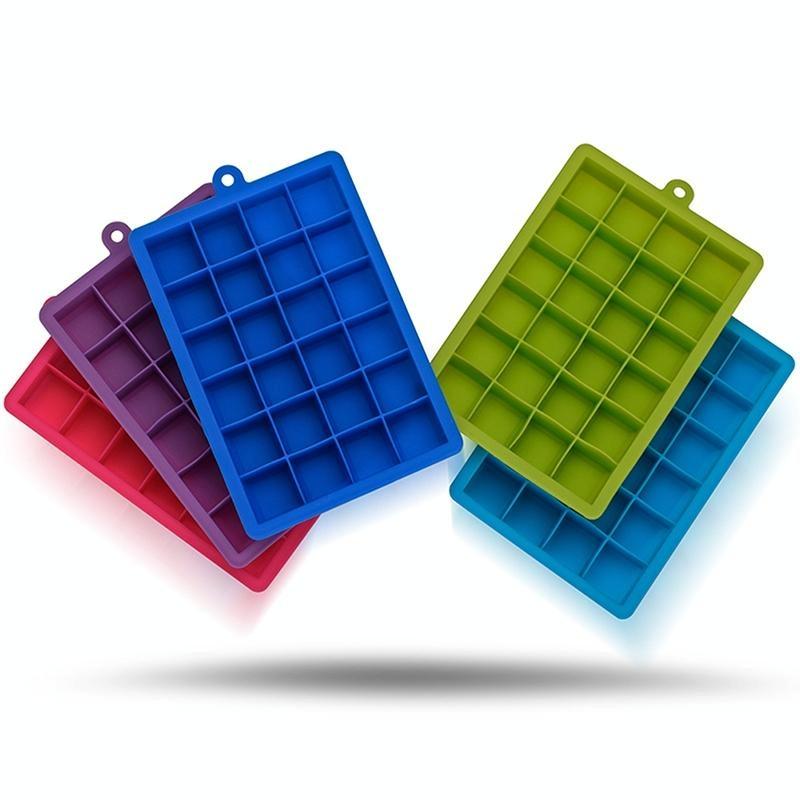 24 Grids Silicone Ice Cube Tray Molds Square Shape Ice Cube Maker Fruit Popsicle Ice Cream Mold(Grass green)
