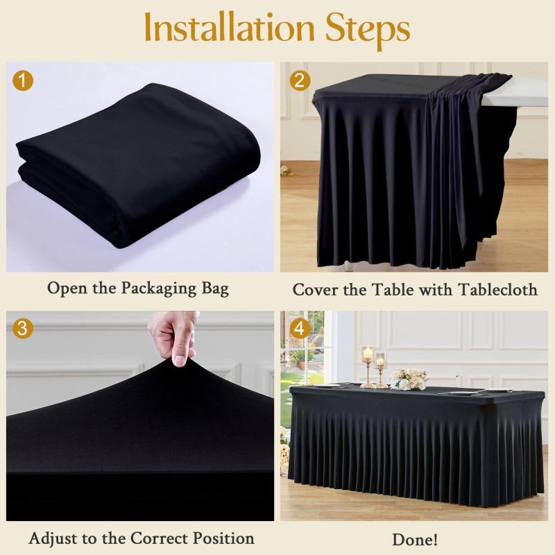 3. Simple table skirt, suitable for 4FT, 6FT, 8FT rectangular tables, with unique fit structure, it can fit the table well, elegant and beautiful