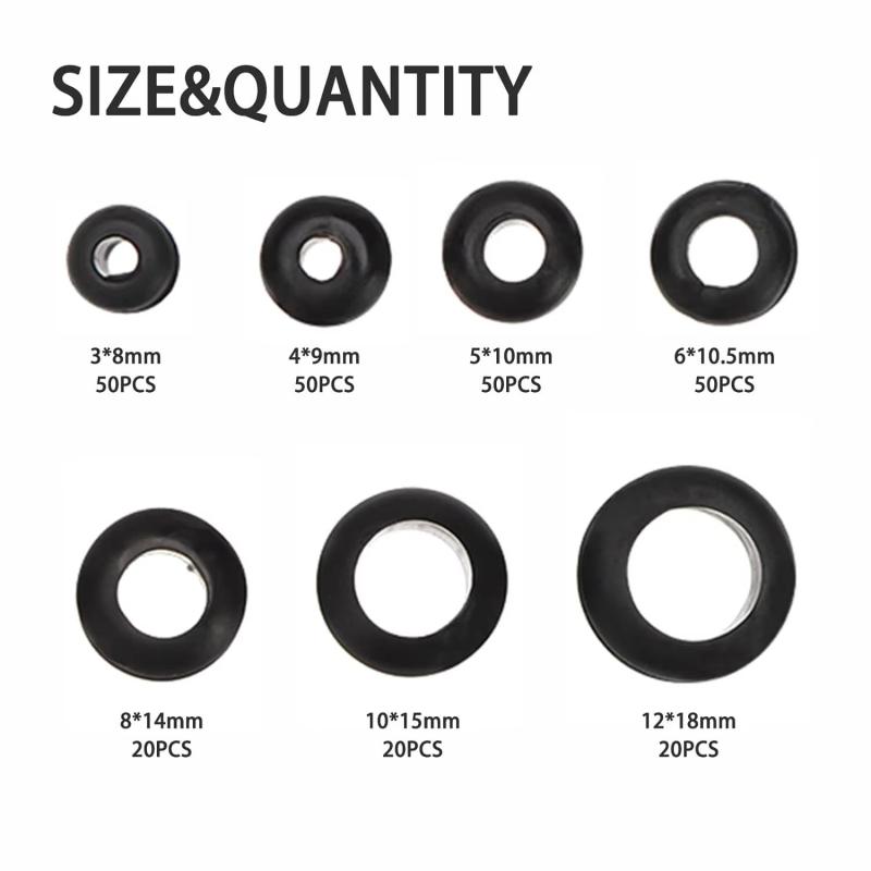 260pcs /Set Double-Sided O-Ring Rubber Sealing Waterproof Conduit Rings(Black)