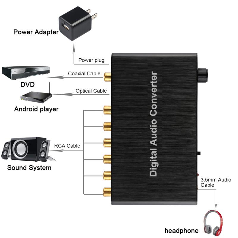 3. 1x Optical SPDIF Toslink and 1x Coaxial Iutput, 1 x CEN, 1 x SW, 1 x FL, 1 x FR, 1 x SL, 1 x SR, 1x switch button (for pass/2.0channel output), supports 6CH volume synchronous adjustment.