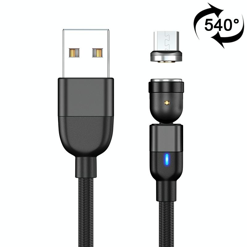 2m 3A Output USB to Micro USB 540 Degree Rotating Magnetic Data Sync Charging Cable (Black)