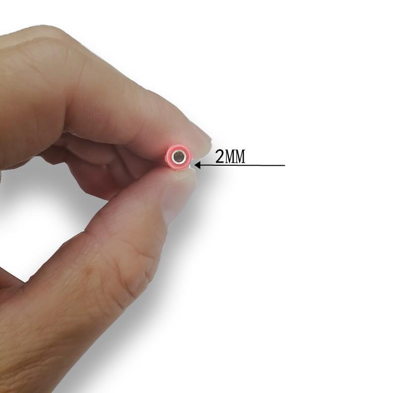 2. Slide it onto the 2 mm diameter test probe to get a 2 mm diameter test probe.