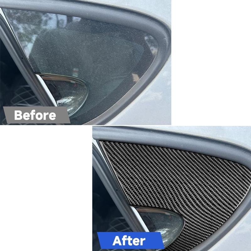 2pcs/Set Carbon Fiber Car Rear Triangle Window Decorative Sticker for SEAT Leon 2005-2012, Left and Right Driver(Black)