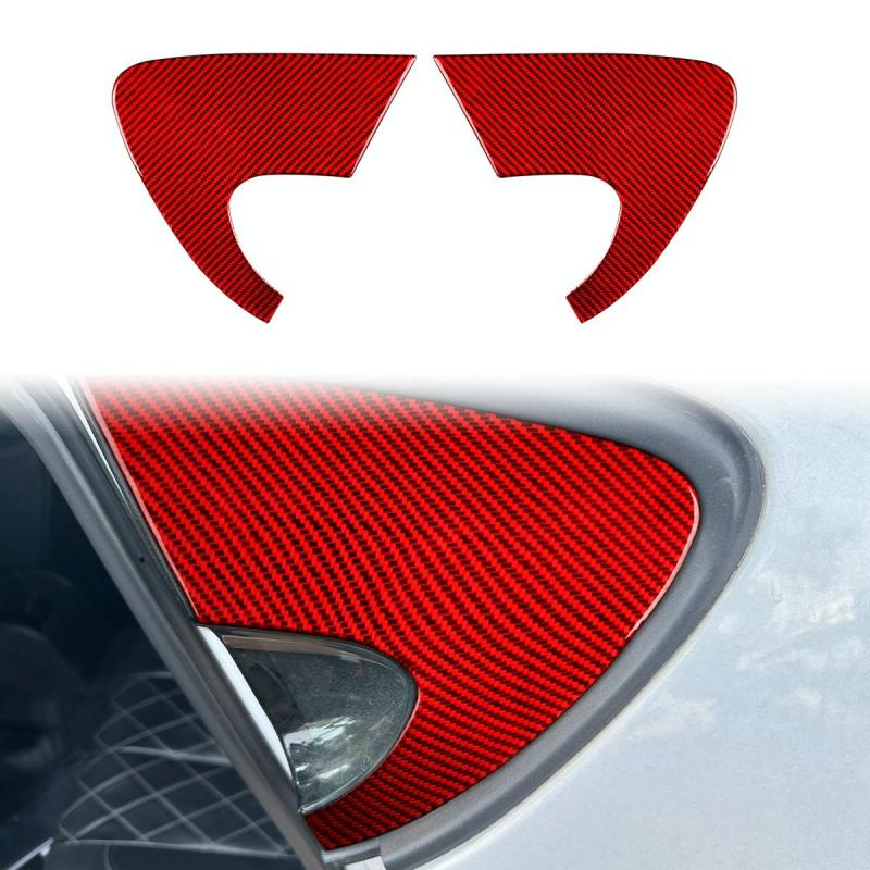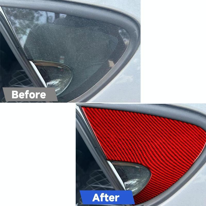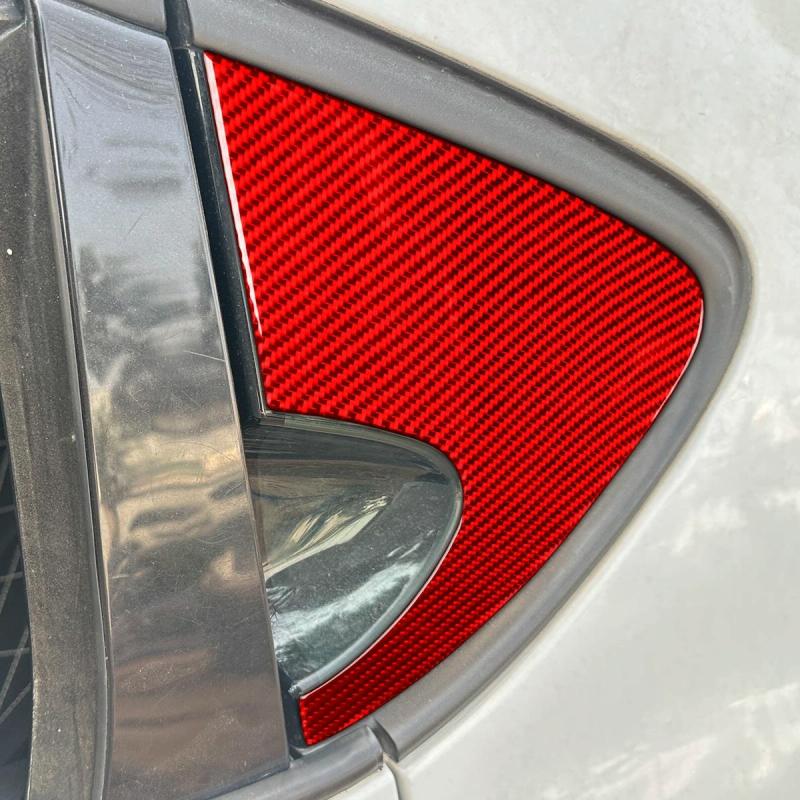 2pcs/Set Carbon Fiber Car Rear Triangle Window Decorative Sticker for SEAT Leon 2005-2012, Left and Right Driver(Red)