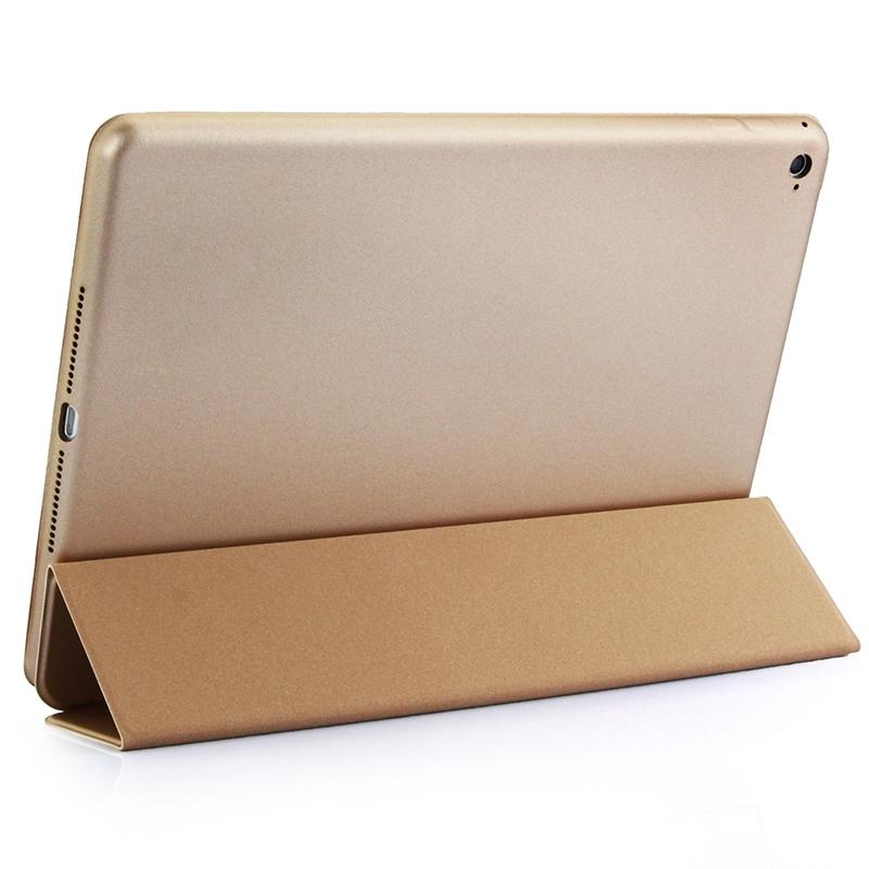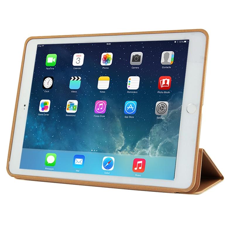 3-fold Naturally Treated Smart Leather Case with Sleep / Wake-up Function & Holder for iPad Air 2(Gold)
