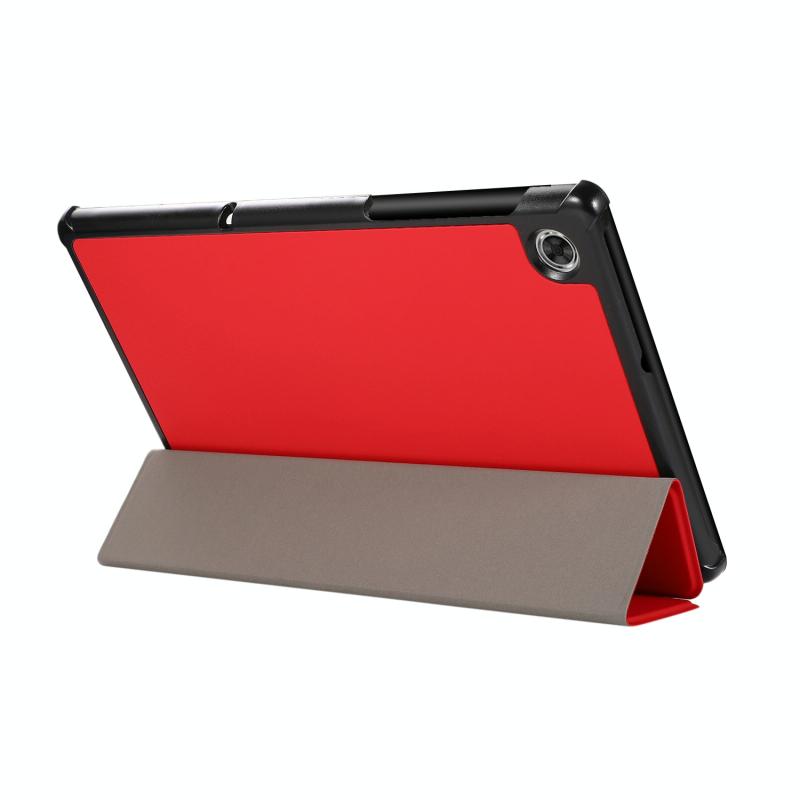 3-folding Skin Texture Horizontal Flip TPU + PU Leather Case with Holder For Lenovo M10 Plus(Red)