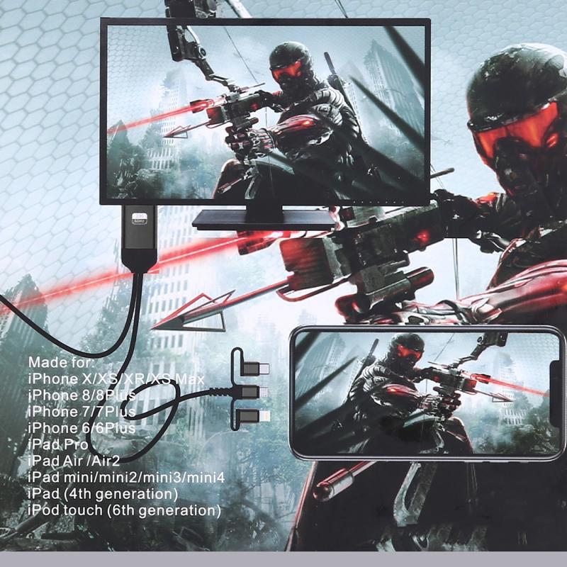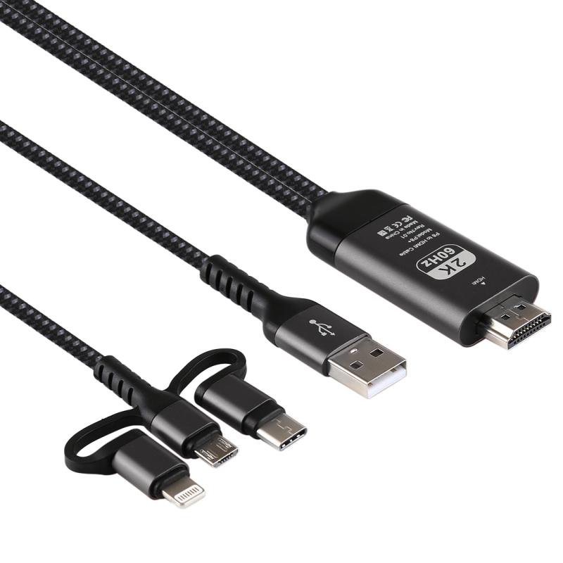 3 in 1 Micro USB + USB-C / Type-C + 8 Pin to HDMI HDTV Cable(Black)