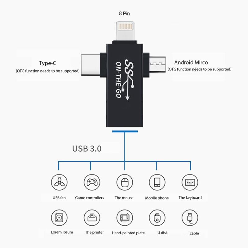 2. Connect one end to a mobile phone/tablet, and the other end to a USB flash drive, you can read documents or watch movies on the mobile/tablet directly