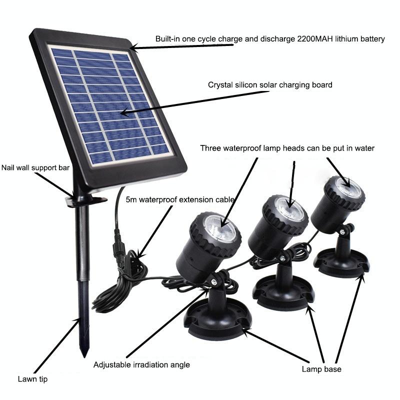3 In 1 Warm Light Lawn Insertion Pool Diving Solar Spotlight