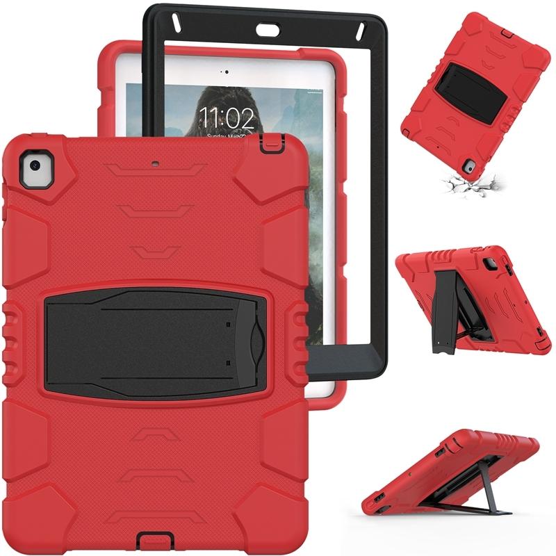 3-Layer Protection Screen Frame + PC + Silicone Shockproof Combination Case with Holder For iPad 9.7 (2018) / (2017) / Air 2 / Pro 9.7(Red+Black)