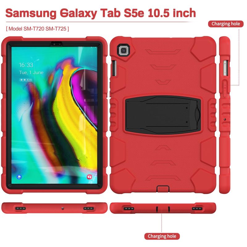 3-Layer Protection Screen Frame + PC + Silicone Shockproof Combination Case with Holder For Samsung Galaxy Tab S5e T720(Red+Black)