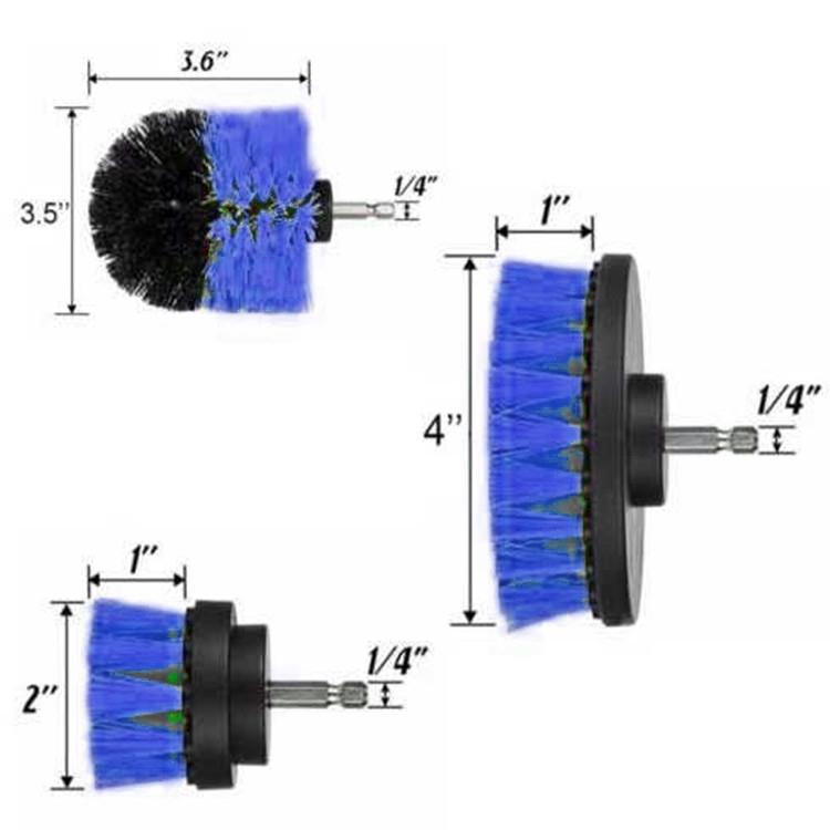2. 3 types of brush heads: 2 inch round brush, 3.5 inch spherical brush and 4 inch disc brush.
