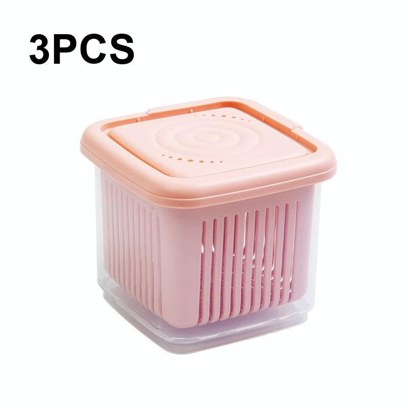 3 PCS Can Be Separated and Drained Fresh Keeping Box, Color: Pink Large
